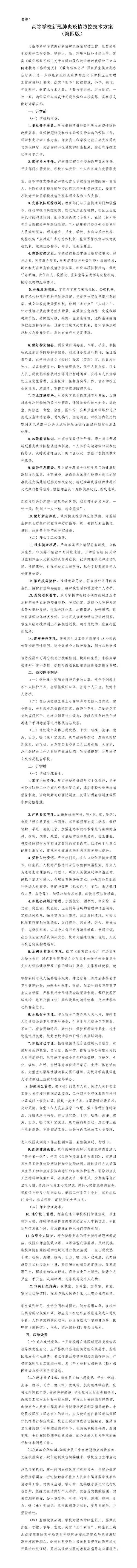 高等学校新冠肺炎疫情防控技术方案(第四版)