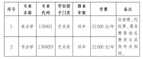 北海艺术设计学院2022年新增美术学、 书法学专业收费标准公示