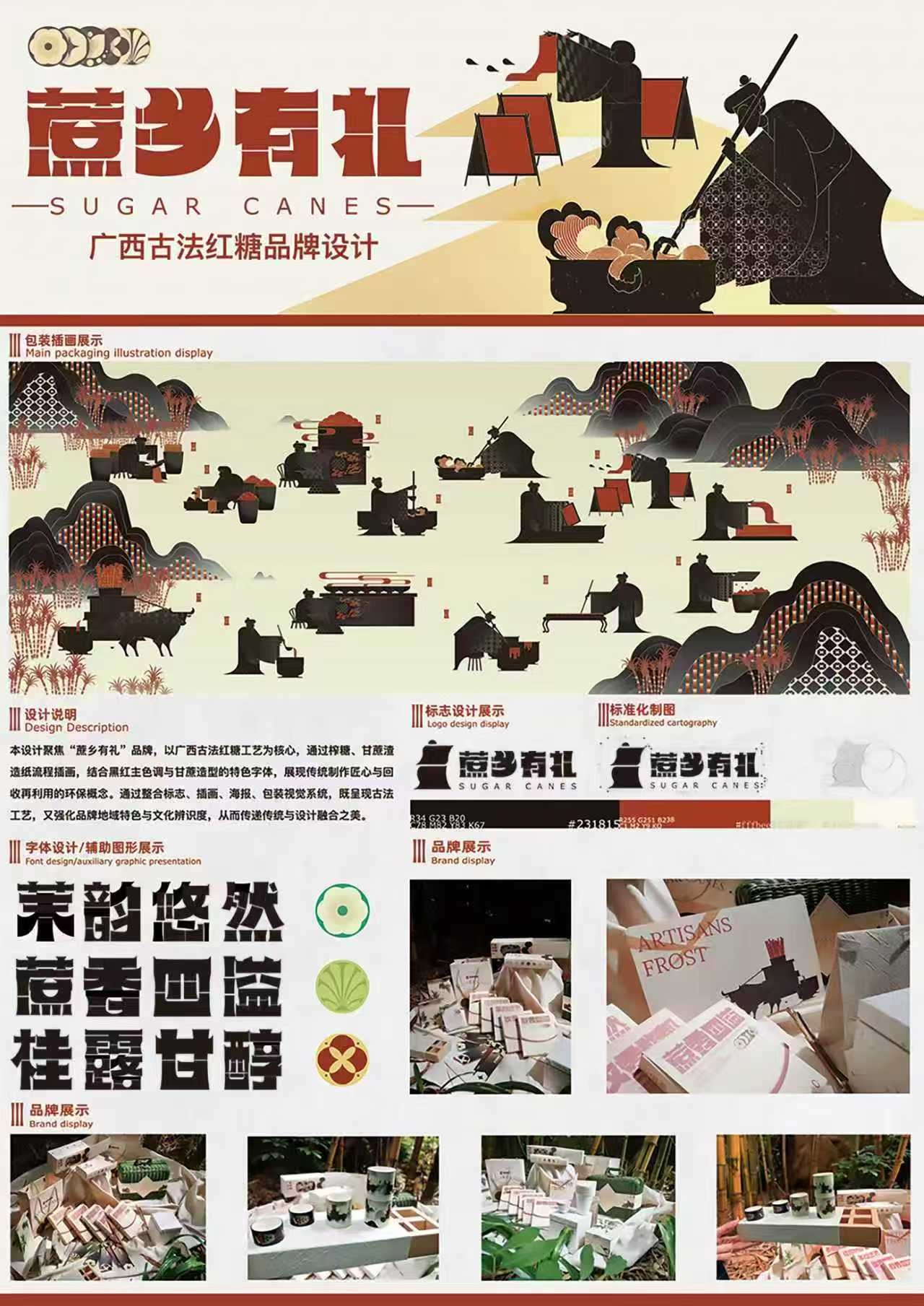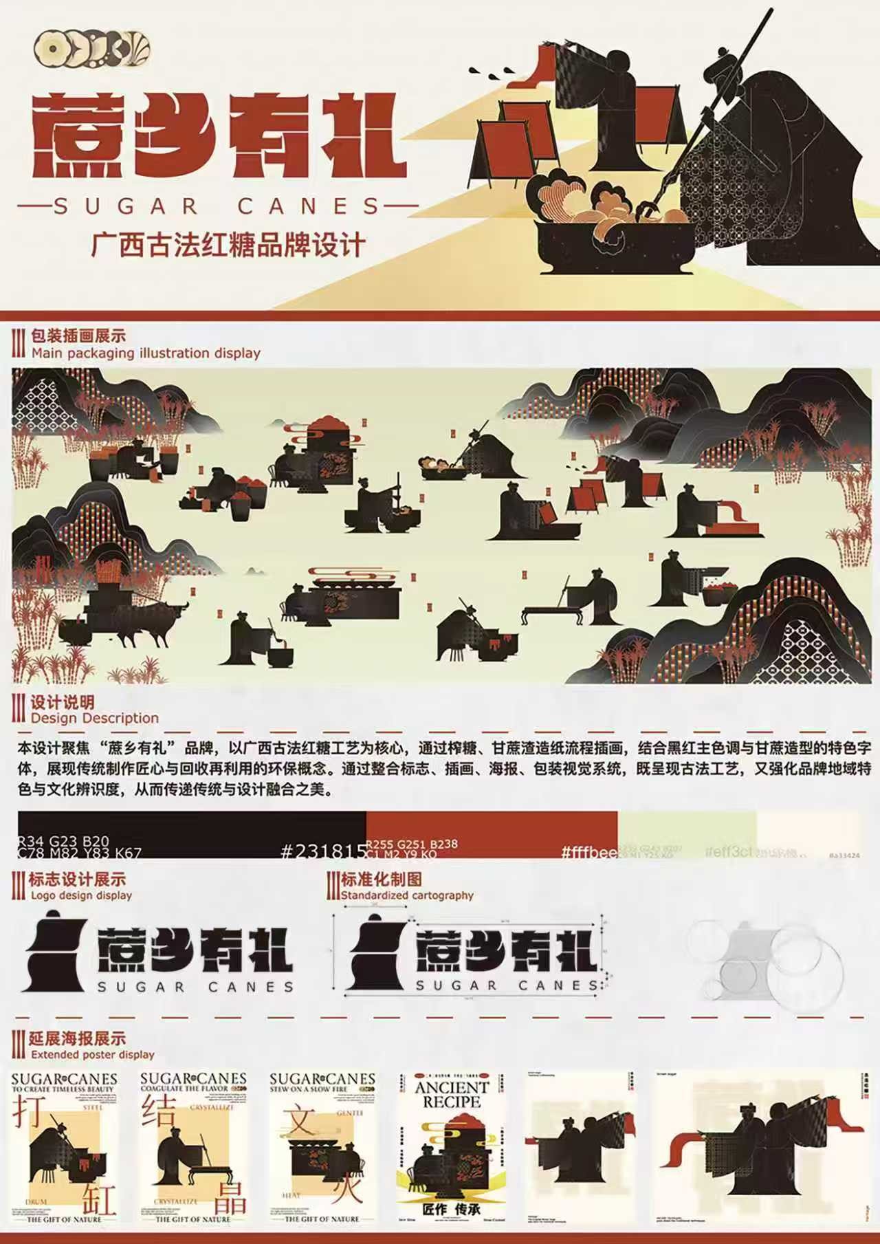 作品名:《“蔗乡有礼”广西古法红糖环保包装设计》    作者:敬明杰、李雯、袁志祥