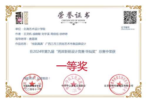 两岸新锐设计竞赛·华灿奖由中国高等教育学会、中华中山文化交流协会、北京歌华传媒集团有限责任公司主办的第九届两岸新锐设计竞赛·华灿奖(以下简称华灿奖)自2024年4月启动以来,经过5个月的作品征集,共收到7万余参赛作品。经校赛、赛区赛评审,总赛网络评审、现场评审及公示,本届华灿奖共评选出总赛获奖作品2749项。
