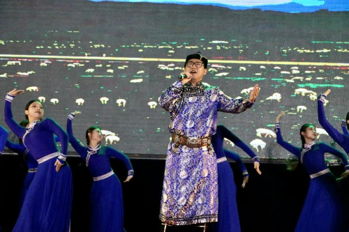 蒙古民歌《呼伦贝尔大草原》歌唱者嗓音浑厚,舞者舞姿优美,将草原的大气与柔美相结合。
