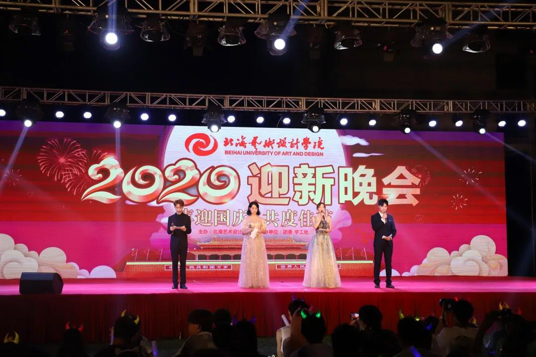 为欢迎2020级新生的到来,与我们一起共同庆祝中华人民共和国成立七十一周年!2020年9月30日晚19:30,由北海艺术设计学院主办、团委、学工处承办的“喜迎国庆·共度佳节”——2020年迎新晚会正式拉开帷幕。