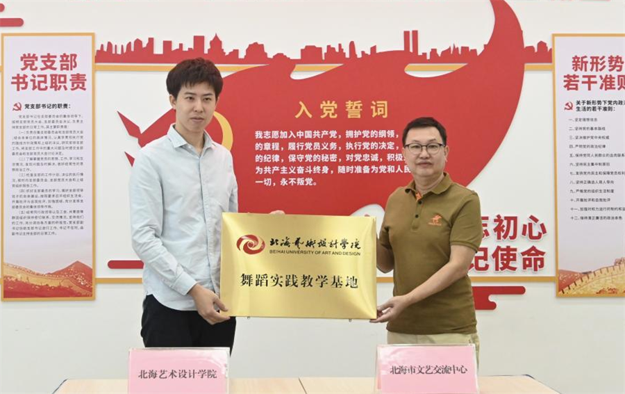 10月24日上午,我校董事长、副校长郑念贻带领人文教育学院负责人及教师代表赴北海市文艺交流中心参加校外舞蹈实践教学基地续约授牌仪式。