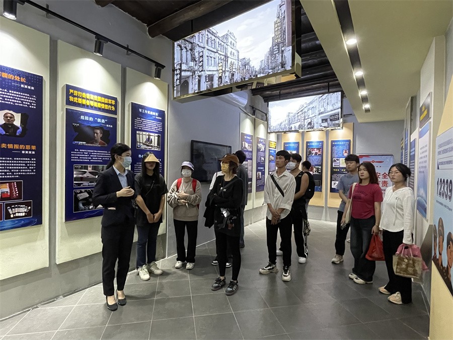 在丸一药房旧址,师生们认真聆听工作人员讲解,了解曾震惊中日的北海“九三事件”和中国共产党隐蔽战线的杰出代表“龙潭三杰”——李克农、钱壮飞、胡底的英雄事迹,观看了地下工作者在北海开展隐蔽斗争的图文史料。通过一幅幅珍贵的历史照片,重温革命烈士艰苦卓绝的革命历程,带领师生一同感受革命先辈顽强抗争、英勇无畏、不怕牺牲的革命精神。