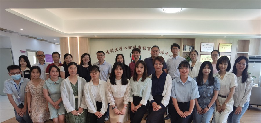 活动上午,六所高校心理健康教育教学团队在广西医科大学武鸣校区心理健康教育与咨询中心共同研讨高校心理危机干预工作实施办法,交流“心理健康教育互助共建”工作计划,各参会高校分别分享了在工作过程中遇到的困惑和难题,并互相学习关于心理危机干预的先进理念和工作方法。我校刘玲花副处长就本校心理健康教育相关工作情况进行了介绍说明。随后,参会高校老师实地走访了该校的心理健康教育与咨询中心,分别参观了团体心理沙盘室、综合训练室、学业发展辅导室、心理剧场和积极心理体验室等场地。