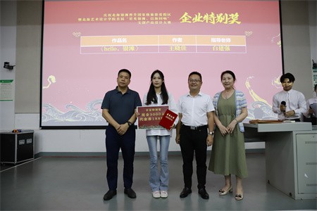 获得获企业特别奖的设计艺术学院视觉传达2009班王晓佳作为获奖学生代表发言,她说到今后将不断完善自我,开拓创新,发扬不畏困难、锲而不舍的精神,一如既往地设计出更好的作品,回报学校与社会。