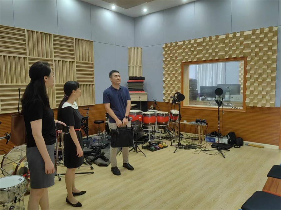 27日上午,在南宁师范大学音乐与舞蹈学院党委书记陈宇、院长黄妙秋的带领下,我校考察交流团参观了学院的音乐厅、报告厅、广西少数民族乐器研究中心展厅、琴房、录音棚、舞蹈教室等实训场地。在广西少数民族乐器研究中心展厅,黄妙秋院长讲解了无孔笛、瑶笛、美骆琴、竹鼓等由音乐名师工作室传承、改良、创新的广西民族民间乐器,并邀请我院考察交流人员一同参与演奏体验。