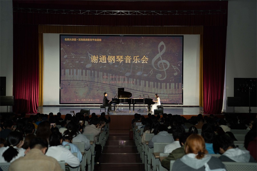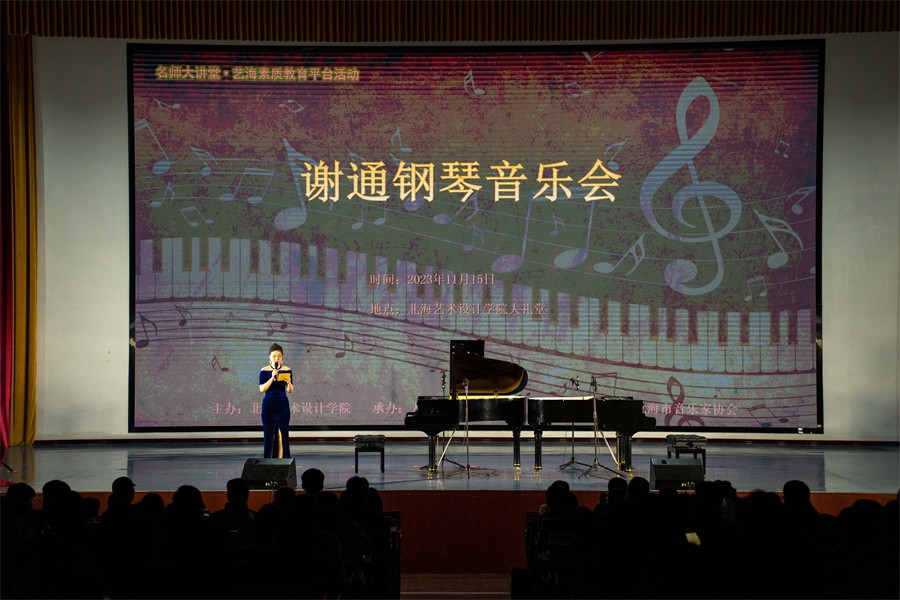 11月15日晚,广西外国语学院谢通博士应邀在我校西校区大礼堂举办个人钢琴独奏音乐会。我校总督学王斌,人文教育学院院长熊秀峰、副院长李谦等领导与北海音乐家协会、社会各界领导嘉宾同学校师生一起观看演出。本次音乐会由人文教育学院艺术教育教研室曲忠坤老师主持。