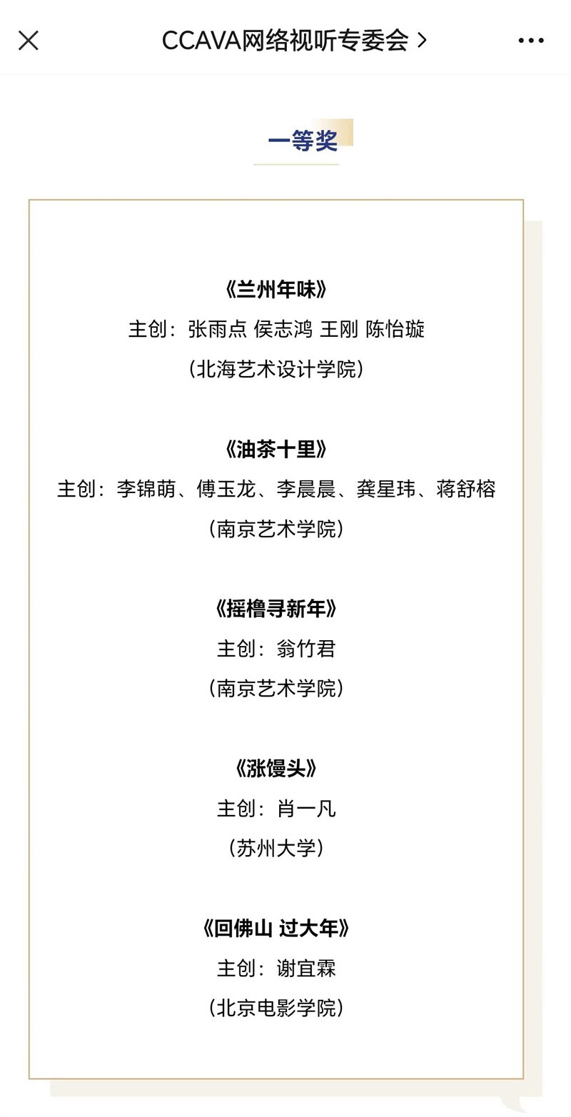 中国高校影视学会网络视听专委会官微发布获奖信息