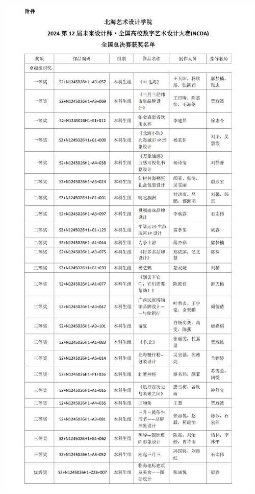 近日,2024第12届未来设计师·全国高校数字艺术设计大赛(NCDA)全国总决赛落下帷幕。设计艺术学院学生在此次大赛中共荣获全国一等奖5项、二等奖6项、三等奖12项、优秀奖1项;获广西区赛一等奖45项、二等奖32项、三等奖40项;设计艺术学院获教师组广西赛区二等奖1项、三等奖1项。