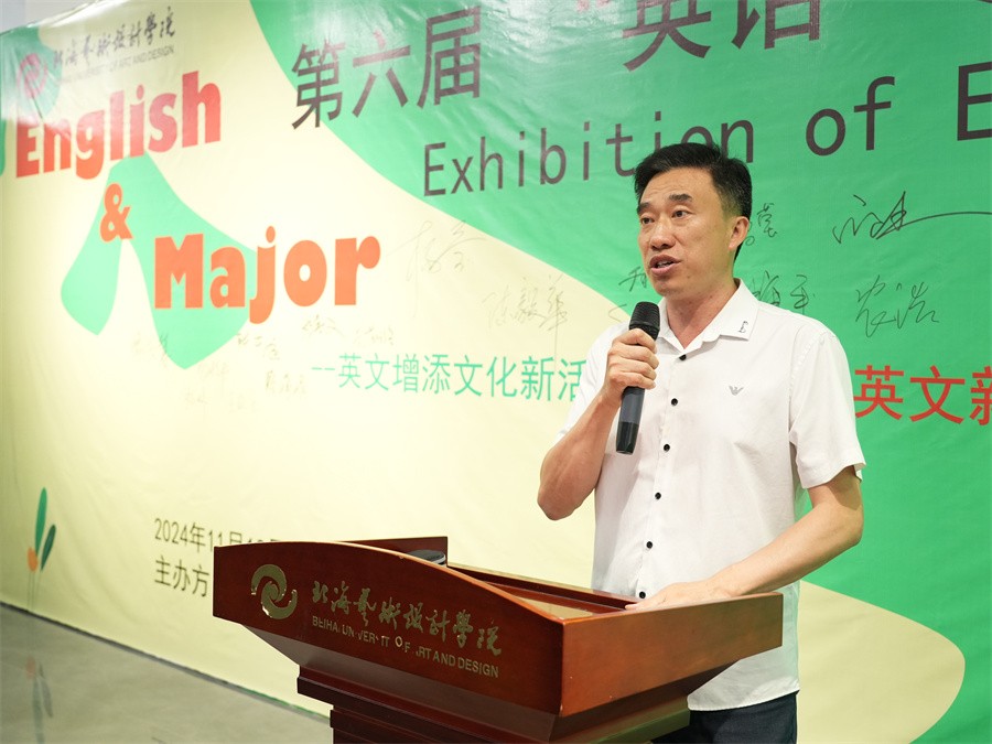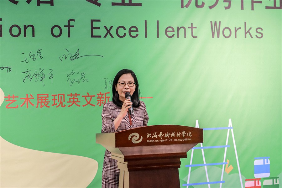 通识教育学院党支部书记、院长杨莹在讲话中表示,此次展览中,学校外语教学充分发挥艺术类院校独特的优势,通过选取爱国主义、中国传统文化等特色鲜明的作业主题,将知识传授、情感价值、文化交际等融入教学内容之中,完成知识、能力和思政育人要求,将立德树人根本任务落到实处。