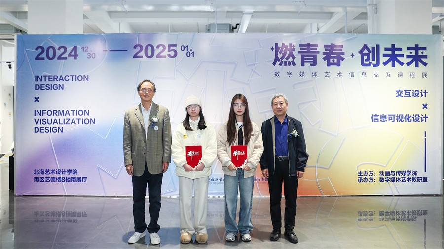此次展览共评选出一等奖2组、二等奖6组、三等奖8组。获奖作品主题涵盖了非遗文化、老龄化、艺术疗愈等多个领域,充分展示了学生在数字媒体艺术方面的创新能力和实践成果。在充满激情和热烈的氛围中,出席领导、嘉宾现场为获奖学生颁发了荣誉证书。