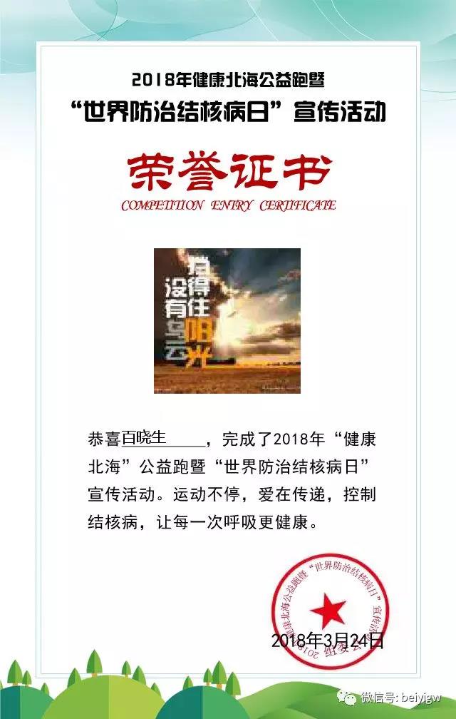 每位参与公益跑活动的市民,都可以拥有一张电子版的"荣誉证书”。