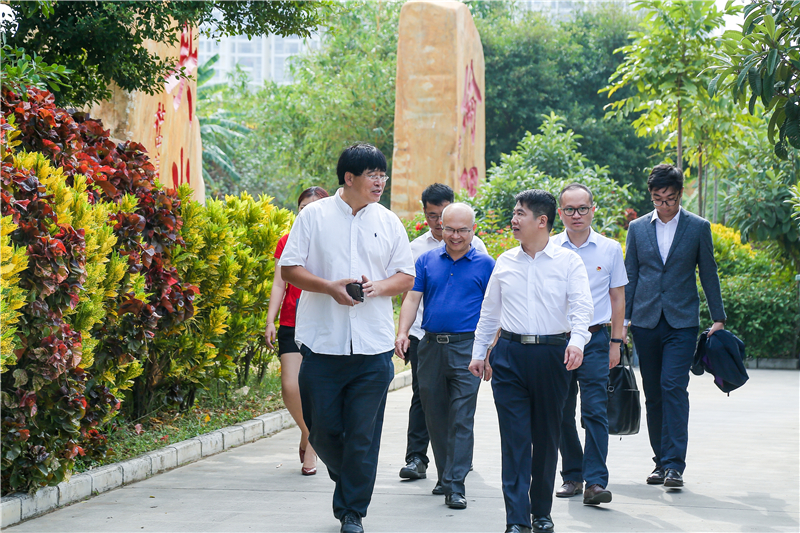 (李晓勇一行在我校领导的陪同下参观校园环境)