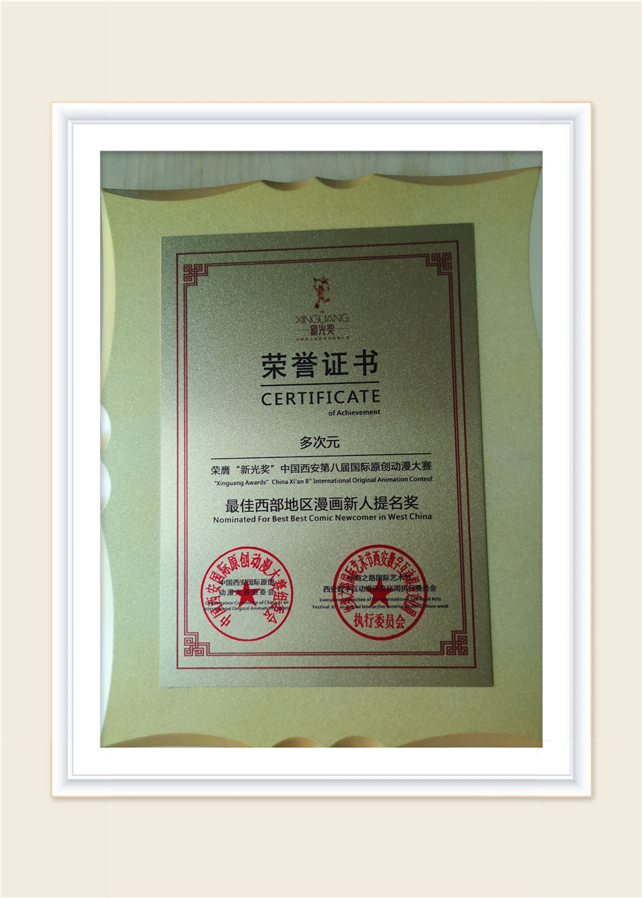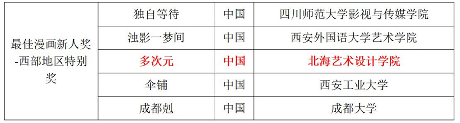 冯兆丹老师获得最佳动画新人奖西部地区特别奖提名