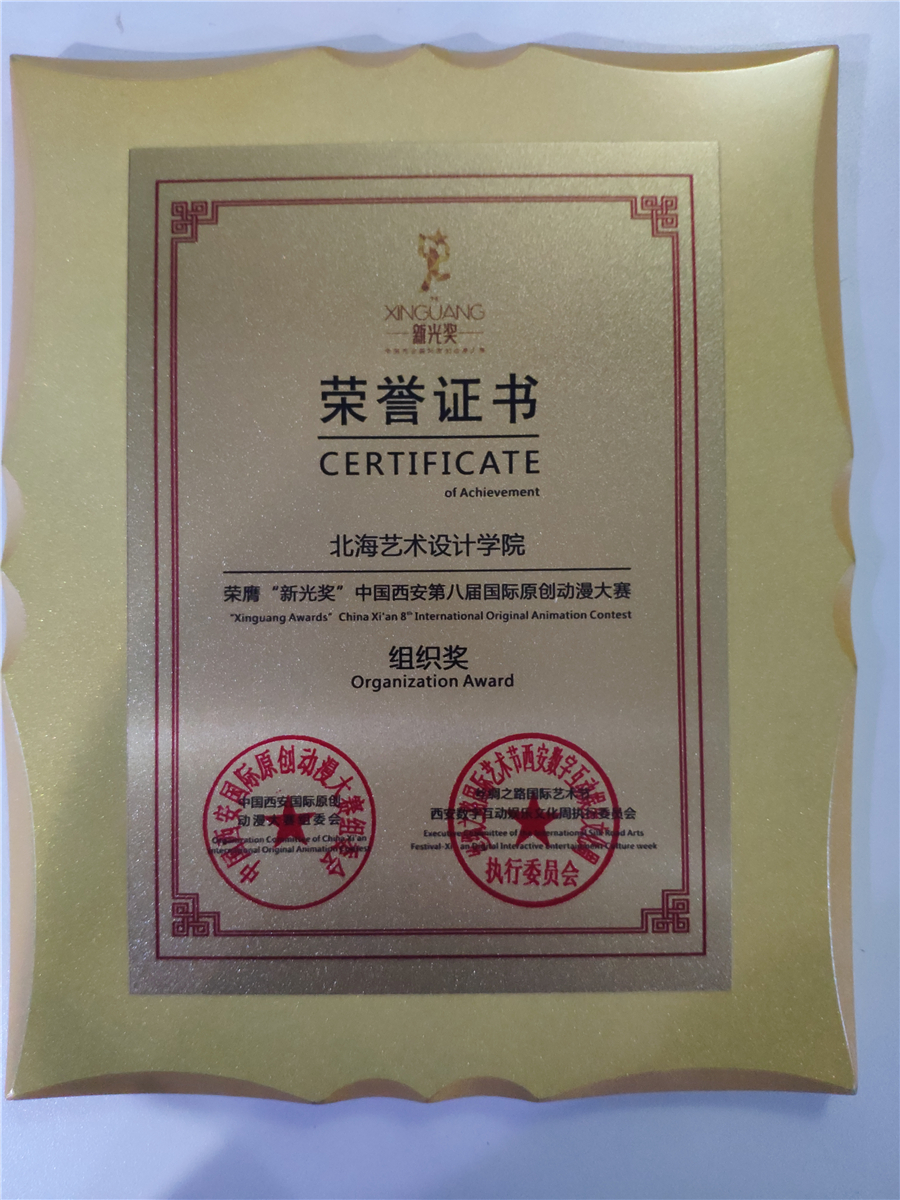 第六届丝绸之路国际艺术节西安数字互动娱乐文化周2019 CCIF中国卡通产业论坛暨新光奖中国西安第八届国际原创动漫大赛颁奖典礼于9月25日-26日在西安隆重举行。我校动画学院在此次大赛中共有14部作品获得入围奖,冯兆丹老师的作品《二次元》喜获最佳动画新人奖西部地区特别奖提名,北海艺术设计学院获得优秀组织院校,陶立阳、孙永辉老师获得优秀教师指导奖。