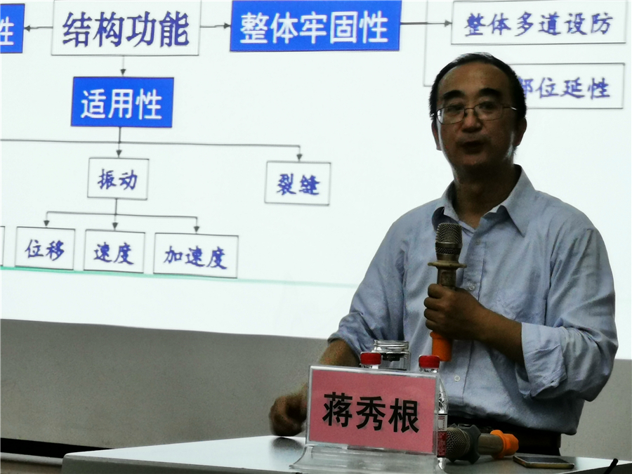 讲座开始时,蒋秀根教授结合北大兴国际机场正式投入运营等几个当前有影响的社会事件,引出相关工程的技术指标的概念,讲述了当下工程结构设计的基本情况、存在的问题和未来的发展趋势。