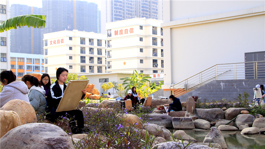 画笔是写生大军最好的表达工具。在其一笔一画的创作过程中,优美的校园环境被生动地加以表现出来,创作者本人内心的感悟也被表现地淋漓尽致。在校园风景写生中学生们兴趣高涨,同时在写生过程中师生关系融洽,绘画积极性高,促进了学生潜能、个性、创造力等方面全面发展,使学生从多角度、多方位、多视点地去发现和表现校园的建筑与风景的美感,无时无刻都在激发学生们的空间意识和表现能力。