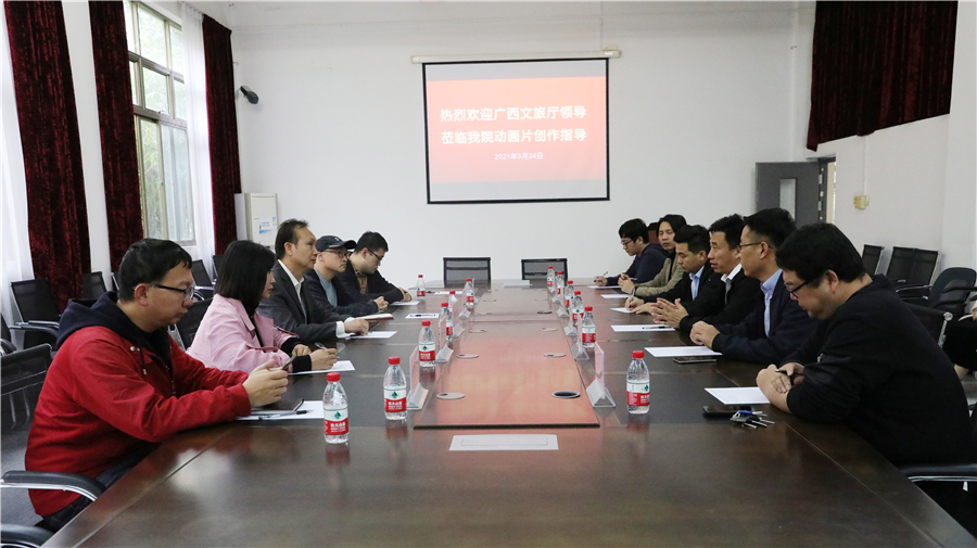 为深入了解我区动漫产业基础及发展情况,加快推动广西动漫产业发展。3月24日下午,广西文联原副主席黄云龙、自治区文旅厅资源开发处四级调研员邹高莹、广西广播电视台公共频道主管、广西动漫协会秘书长潘波、北海市旅游文体局资源开发科科长镇威、北海市旅游文体局资源开发科干部宫笠铭等组成的调研组莅临我校动画学院,就动画专业建设及动漫创作情况开展调研。