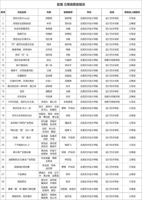 (三等奖获奖名单)