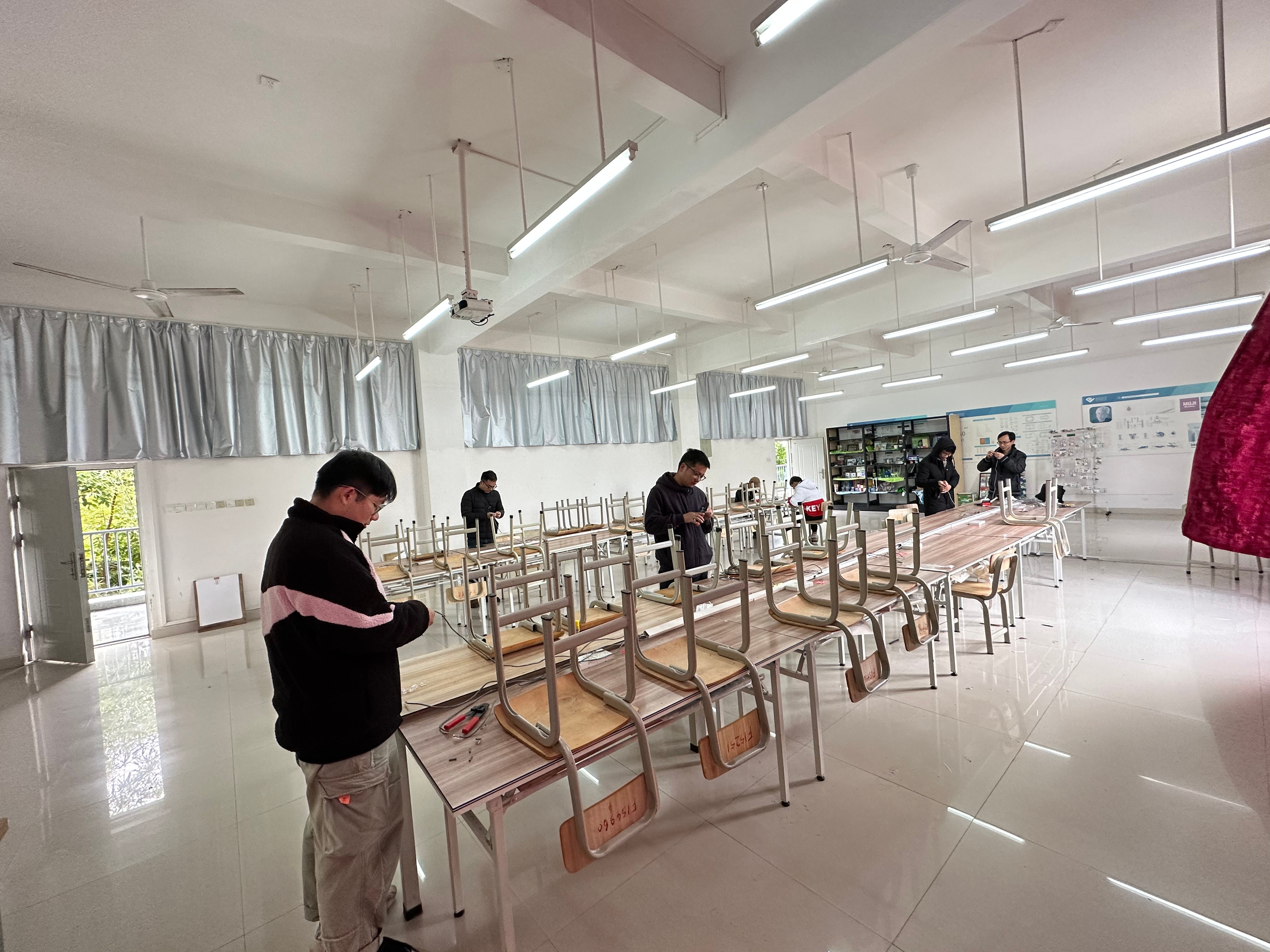 学校西校区公德楼,伦理楼新增20个电子教室,东校区综合楼新增4个电子教室,共960台新电脑,为了电子教室能尽快投入使用,设备与信息处老师加班加点安装新电脑,接入网络,安装系统、机房管理软件,为学校教育教学积极贡献自己的力量。(劳大耀/摄)