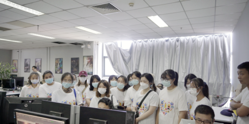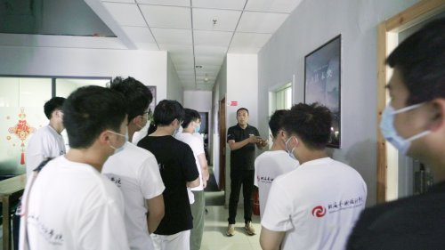 考察团一行先后对海纳文化的公司环境、人员架构、员工工作状态等进行实地考察,重点调研了公司发展现状、业务板块及人才需求等情况。在海纳三川文化传媒有限公司副总裁邢江峰的带领下,学生近距离观摩了影视项目后期制作流程,对各部门的工作运转模式有了更直观的理解和认识。