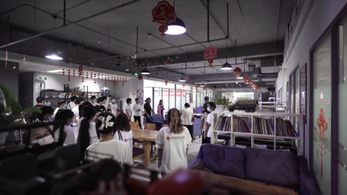 海纳文化公司副总裁邢江峰带学生参观公司一线工作环境